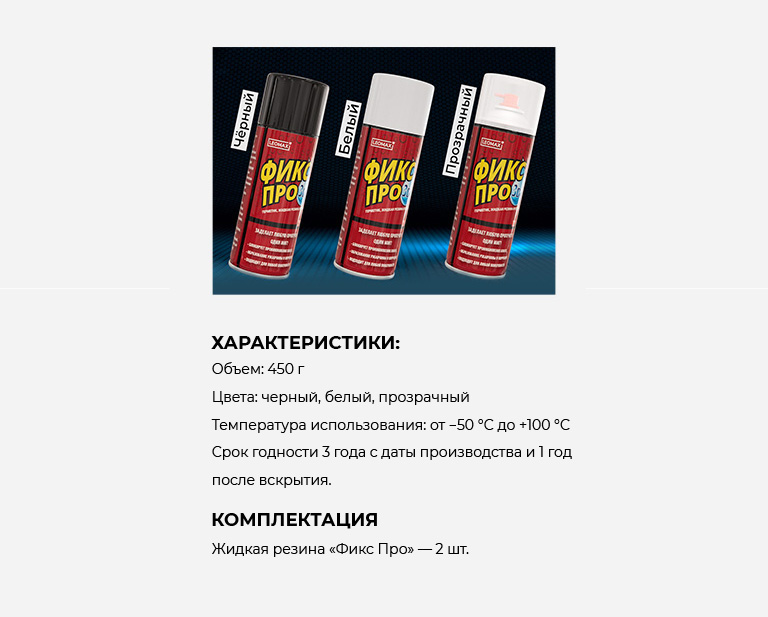Преимущества резины ФИКС ПРООдно из главных достоинств «ФИКС ПРО» 3 В 1 заключается в универсальности. Продукт может использоваться как клей, герметик и защитное покрытие.